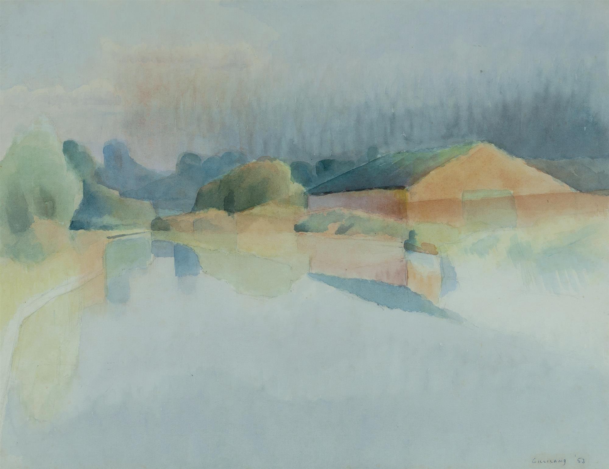 GILLILAND, Hector (1911-2002) 'Canal - Warwick, UK,' 1953. W/Clr 34.5x45cm PROVENANCE: A private collection, Sydney.Estimate $400-700