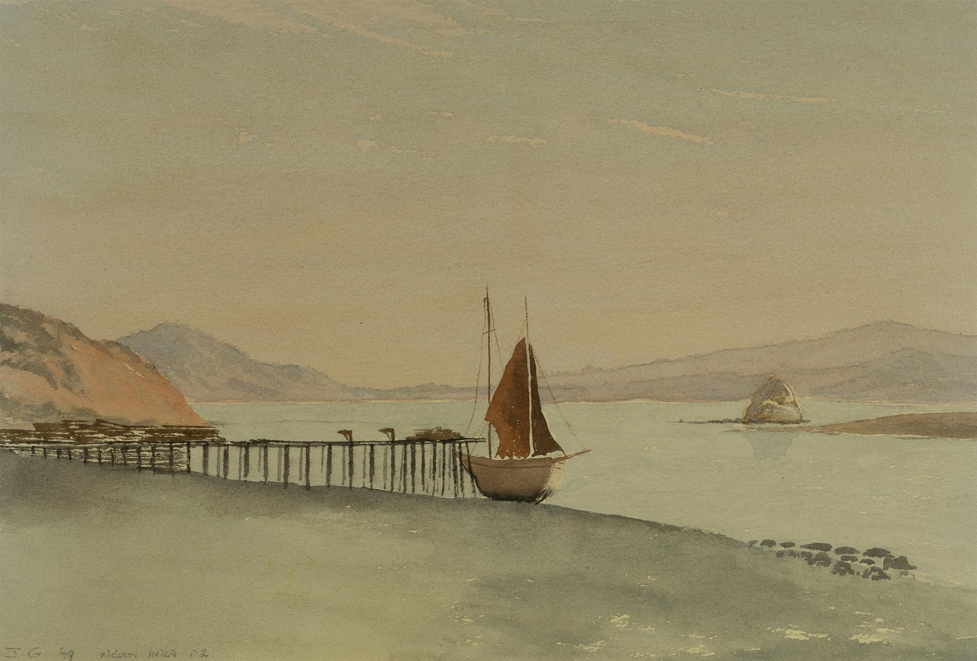 GULLY, John (New Zealand 1819-1888) 'Nelson Haven, NZ,' 1878. Initialled, titled, and dated lower left. W/Clr 25.5x37.5cm PROVENANCE: Estate Late Howard WaughEstimate $700-1,200