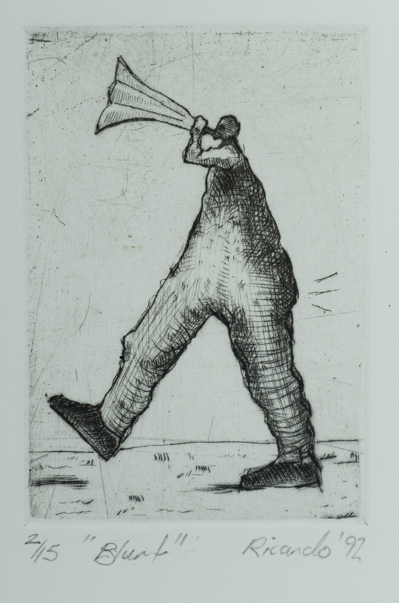 RICARDO, Geoffrey (b.1964) 'Blurt,' 1992. Etching 2/15 9x6cm (plate) 37.5x28.5cm (sheet)Estimate $100-200