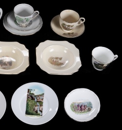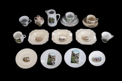 Quantity of Blue Mountains Souvenir Items. Three cup and saucer trio sets, dessert bowls, jug, vase and two other cups. Various makers. (Rm4)Estimate $50-80
