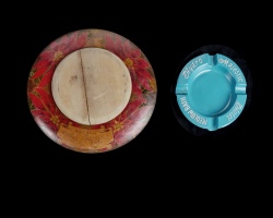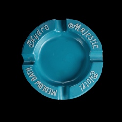 Hydro Majestic Souvenir Bread Board. Pyrographed with Australian Wildflowers. Inscribed 'Souvenir of Hydro Majestic Medlow Bath, Easter 1934' and signed verso ‘Made in N.S.W. by Shaw Studios…' together with an aluminum ashtray marked 'Hydro Majestic Hotel Medlow Bath.' (Rm4) Estimate $100-200