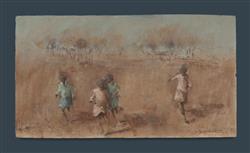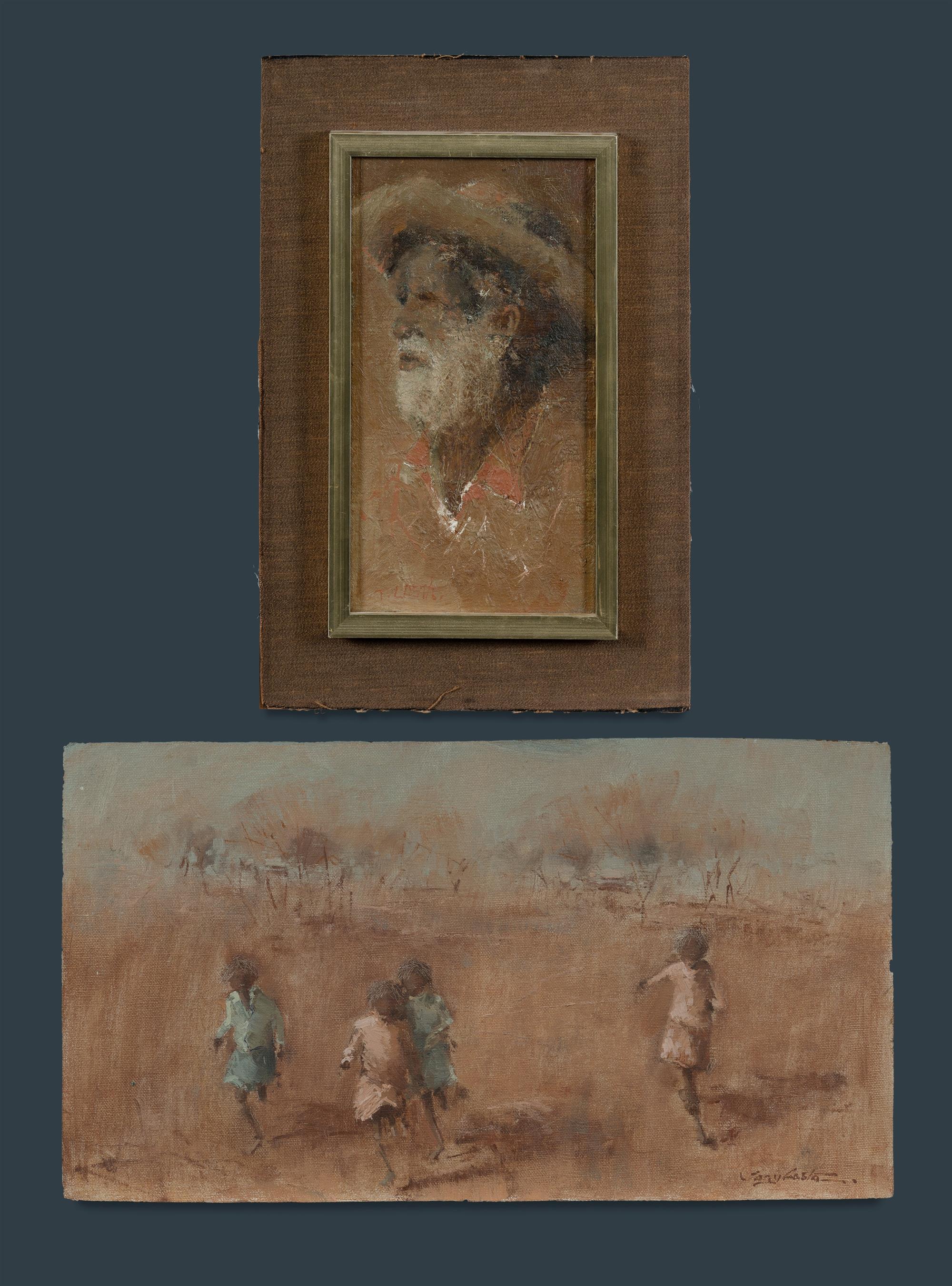 COSTA, Tony (b.1955) (2) Children Running (25x45.5cm); and Portrait of Man (24.5x14.5cm) Oil on Canvas on Board (2)Estimate $200-400