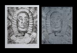 BOYD, David (1924-2011) (2) 'Judge Holding Mask' (From the Trial series) Original Zinc Etching Plate & Original Etching 54/60 (2) 26.5x21.5cm (plate) 48x37cm (sheet)