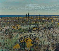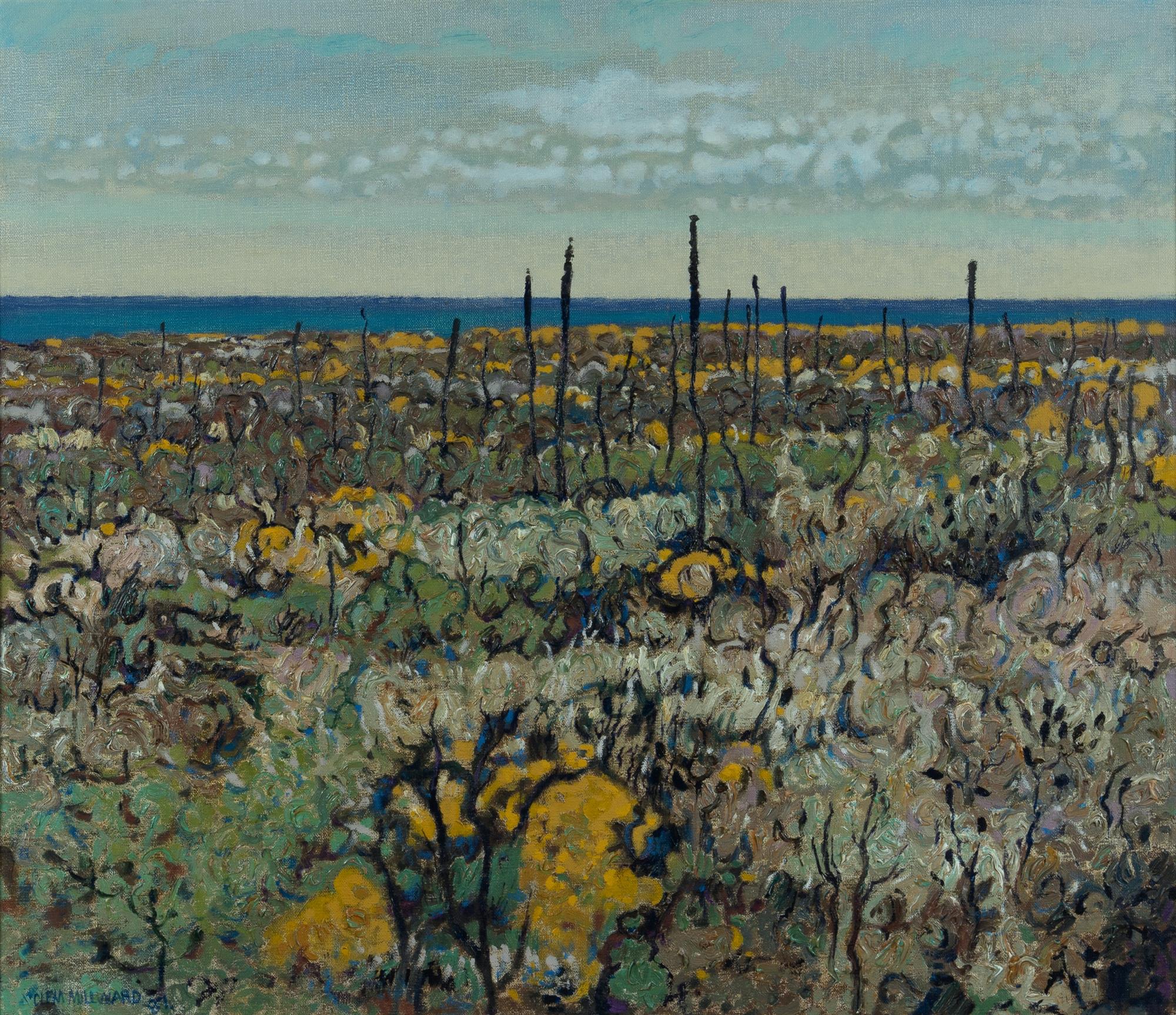 MILLWARD, Clem (b.1929) 'Coastal Heath, Kalbarri,' 1987. Artarmon Galleries, Sydney, label verso. Oil on Linen 65x75cm PROVENANCE: Deceased estate, Sydney.Estimate $700-1,200