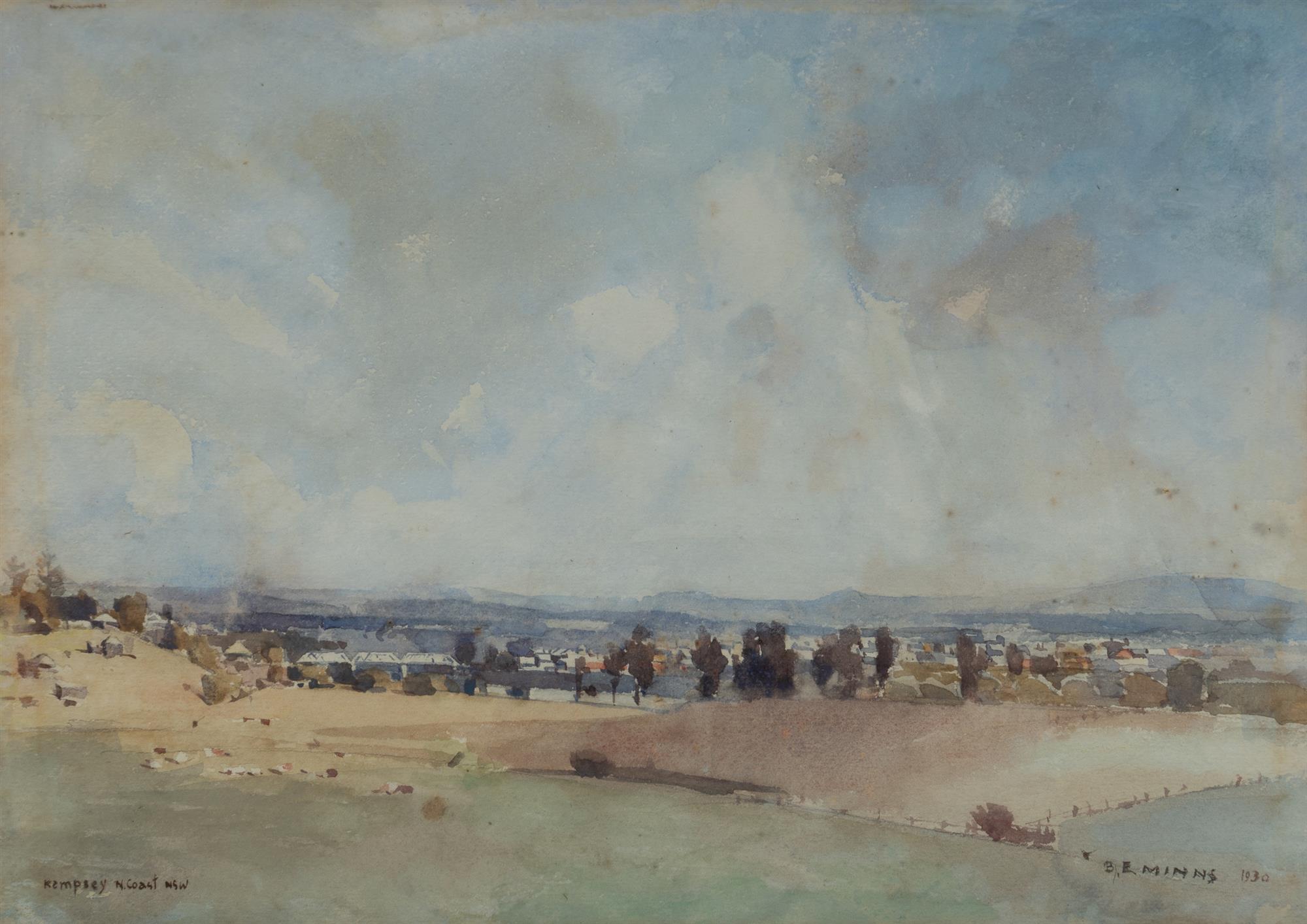 MINNS, Benjamin Edwin (1864-1937) 'Kempsey, N. Coast, NSW,' 1930. W/Clr 26.5x38cm PROVENANCE: Deceased estate, Sydney.Estimate $600-900