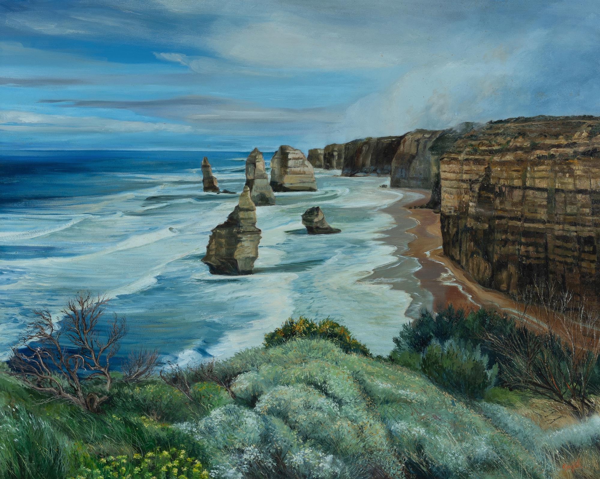 GRIFFITH, Pamela (b.1943) The Apostles - Great Ocean Road, Victoria. Oil on Canvas 79x99.5cm PROVENANCE: Lawson-Menzies, Sydney, 28th August 2005 (lot 169A).Estimate $250-400