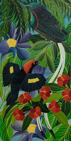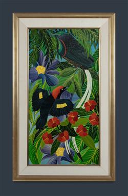 TODD, Milan (1922-2018) 'Birds of Paradise' Anvil Art Gallery, Wodonga, label verso. Acrylic on Canvas on Board 85.5x44.5cmEstimate $500-800