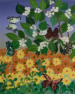 TODD, Milan (1922-2018) 'Butterflies Garden II,' 1981. Anvil Art Gallery, Wodonga, label verso. Acrylic on Canvas 60x49cmEstimate $400-700