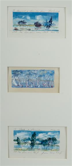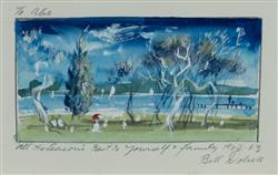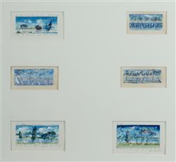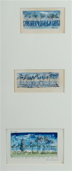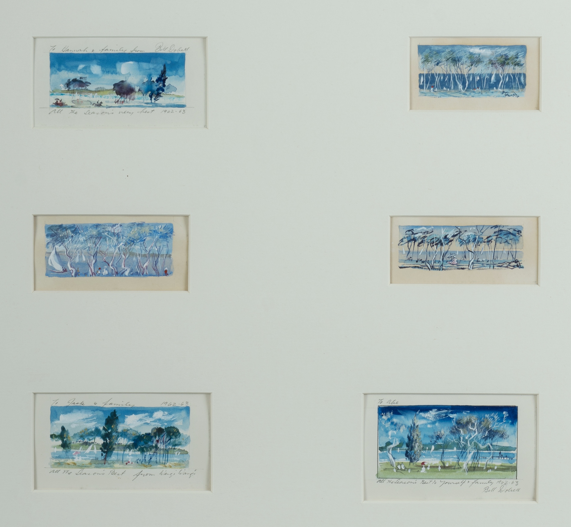 DOBELL, William (1899-1970) (6) Six Wangi Wangi Christmas Cards, c.1962-63. Three inscribed (two signed). W/Clr & Gouache (6) 4x7.5cm (largest)Estimate $2,000-4,000