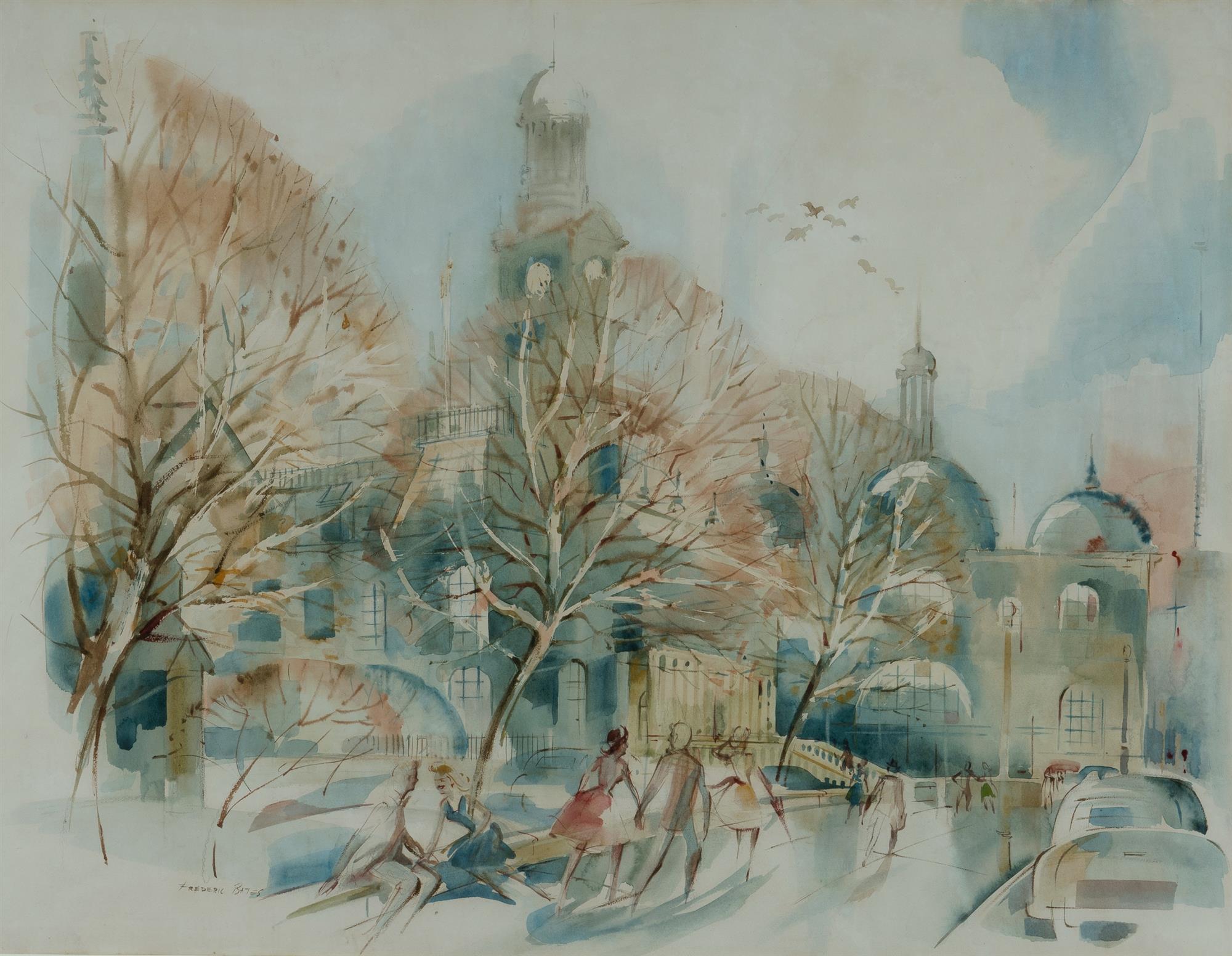 BATES, Frederic (1918-2009) Sydney Town Hall and Queen Victoria Building, c.1950s. W/Clr 42x54cmEstimate $300-500