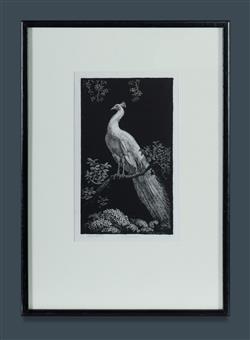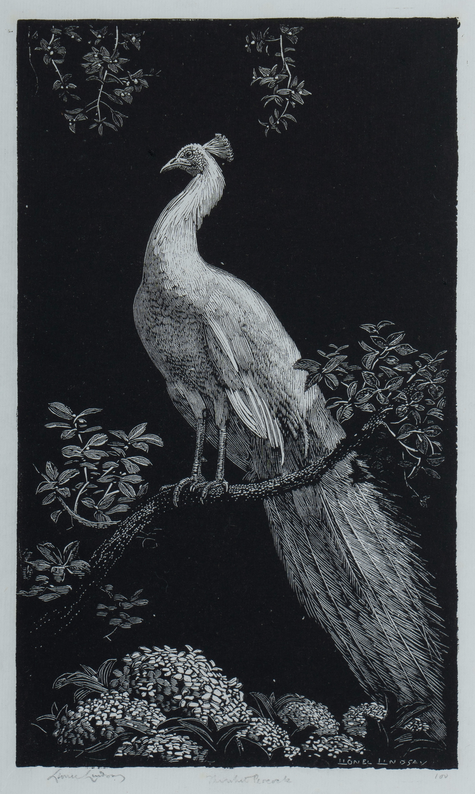 LINDSAY, Lionel (1874-1961) 'The White Peacock' Signed in pencil. Woodcut ed. 100 20x11.5cmEstimate $300-500