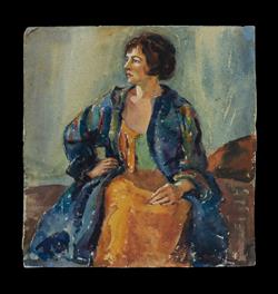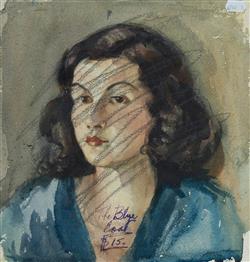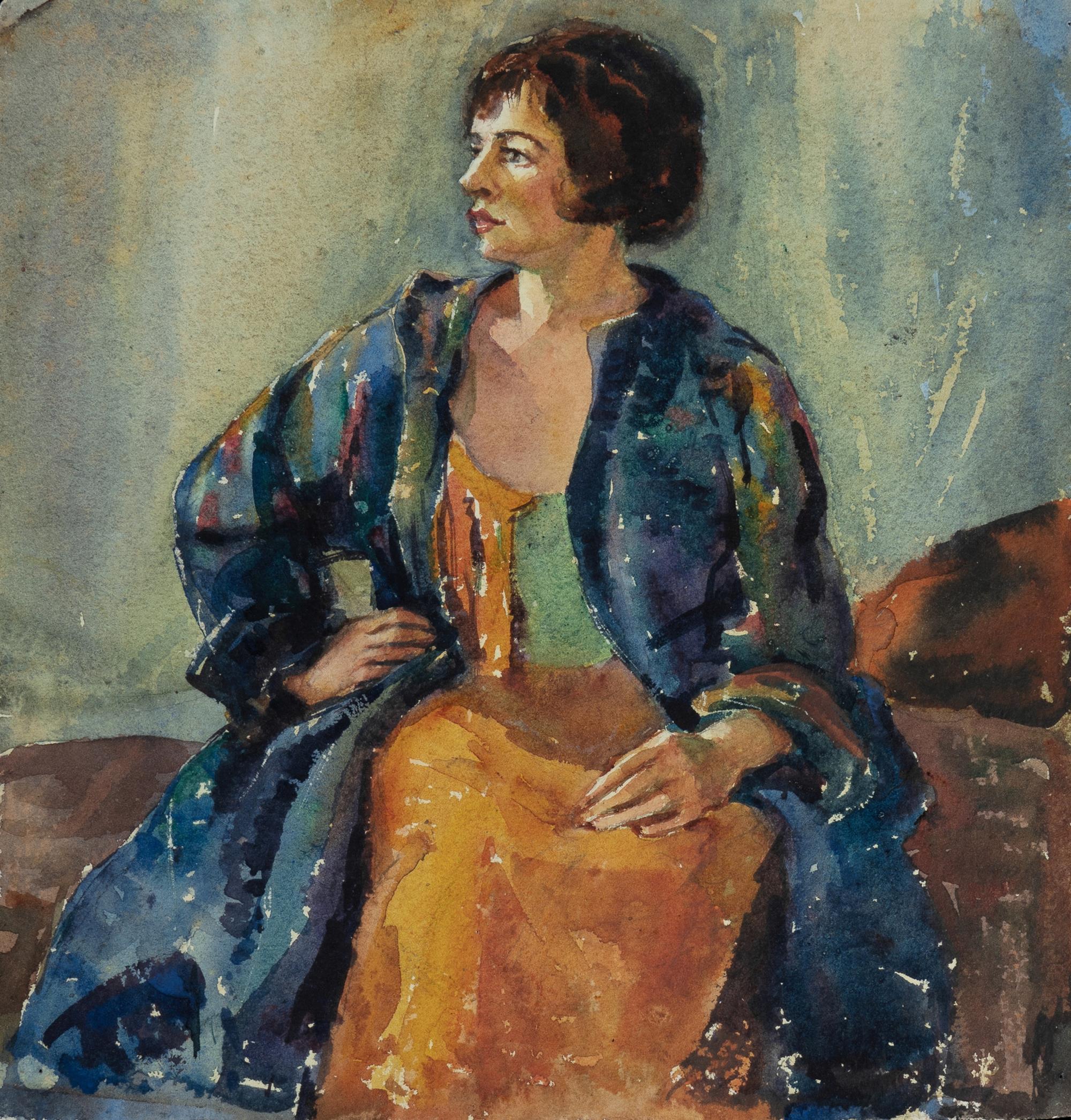 COGHLAN, Elaine (1897-1989) 'The Blue Coat' Unsigned. Cancelled sketch of a woman verso. W/Clr 29x28cm PROVENANCE: Belinda Foy, great niece of the artist.Estimate $200-400