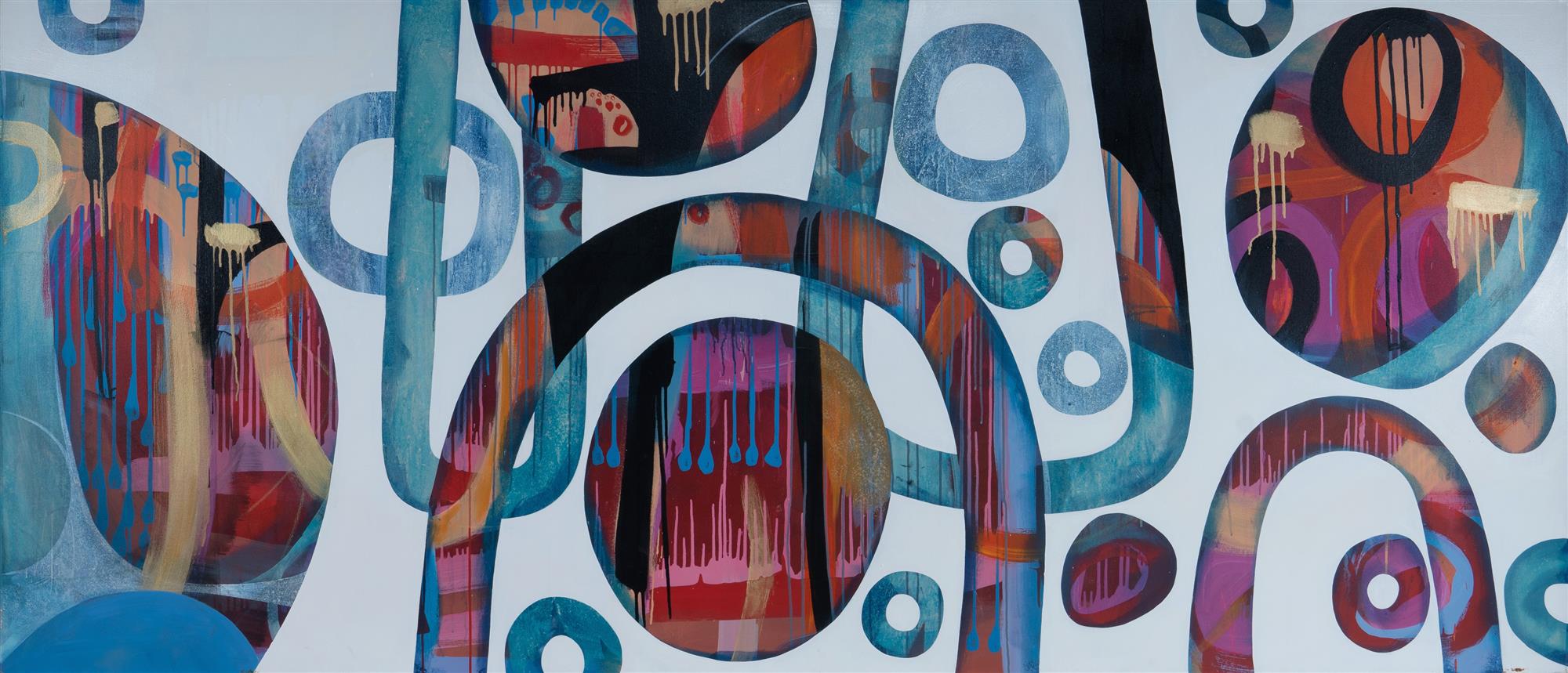 WARK, Marnie (b.1975) 'A Place of Possibility' Unsigned. Tim Olsen Gallery, Sydney, label verso. Acrylic on Canvas 130x300cmEstimate $1,500-2,500