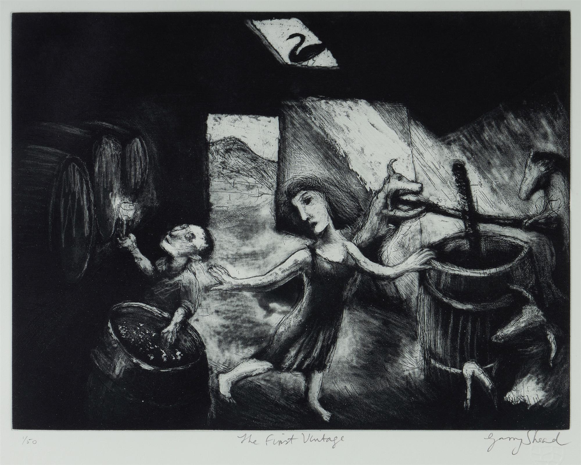 SHEAD, Garry (b.1942) 'The First Vintage' Etching & Aquatint 1/50 24.5x32.5cm (plate)Estimate $400-700