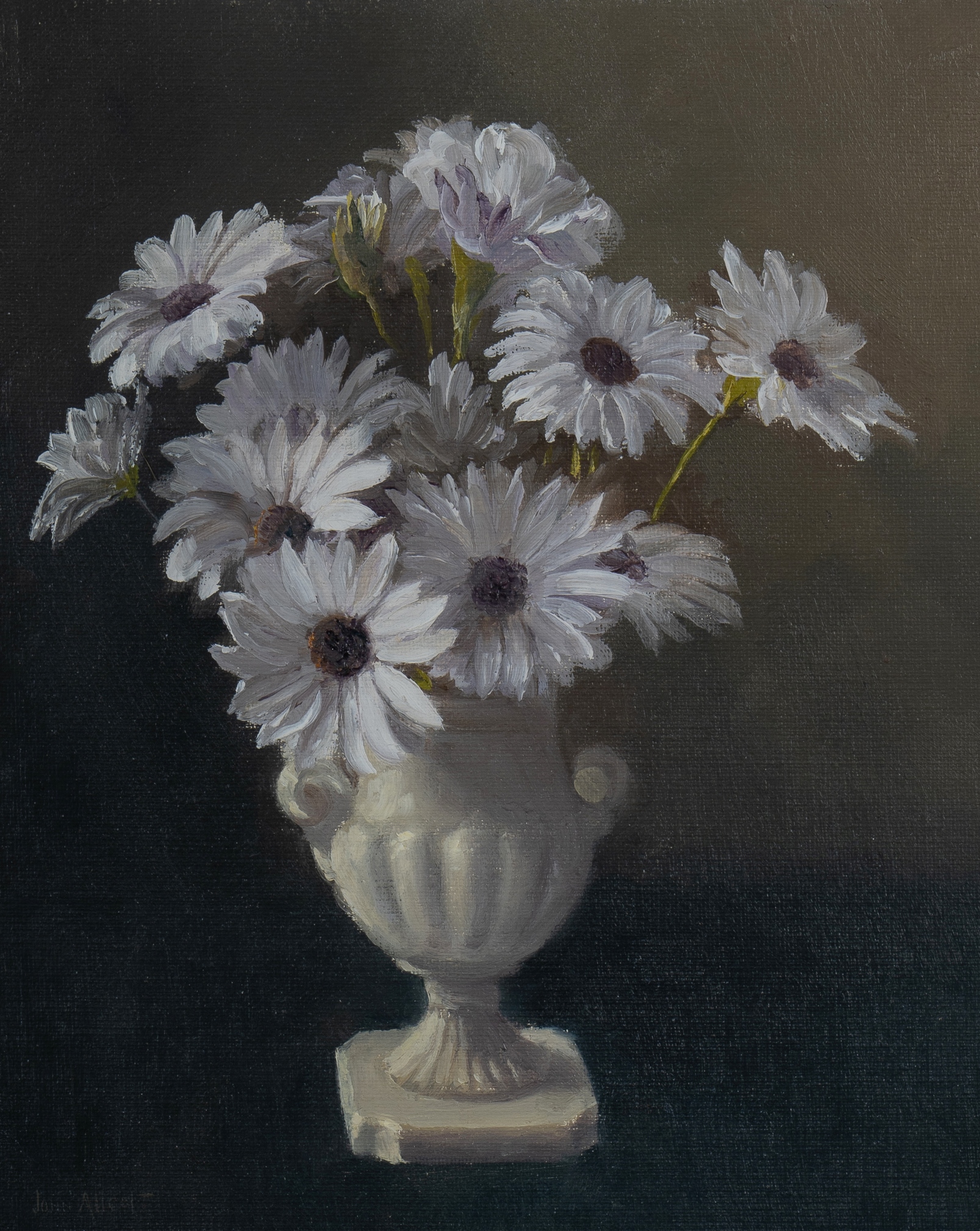 ALLCOT, John Charles (1888-1973) 'White Daisies' Artist label verso. Oil on Canvas Board 29.5x24.5cmEstimate $400-700