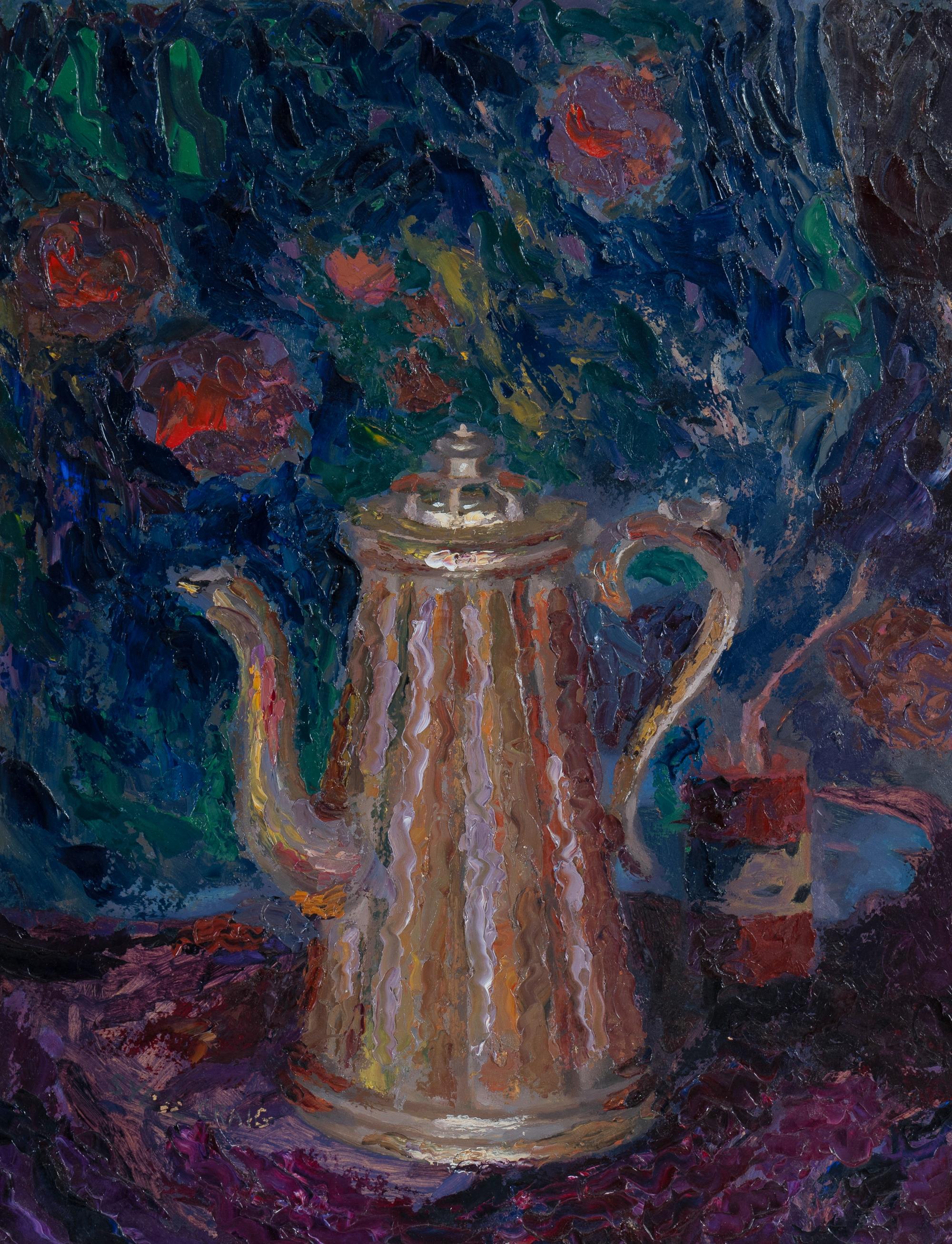 CRAIG, Sybil (1901-1989) 'Coffee Pot' Exhibition label verso. Oil on Board 49.5x39cm PROVENANCE: Leonard Joel, Melbourne, 12th October 2017 (lot 26).Estimate $600-900