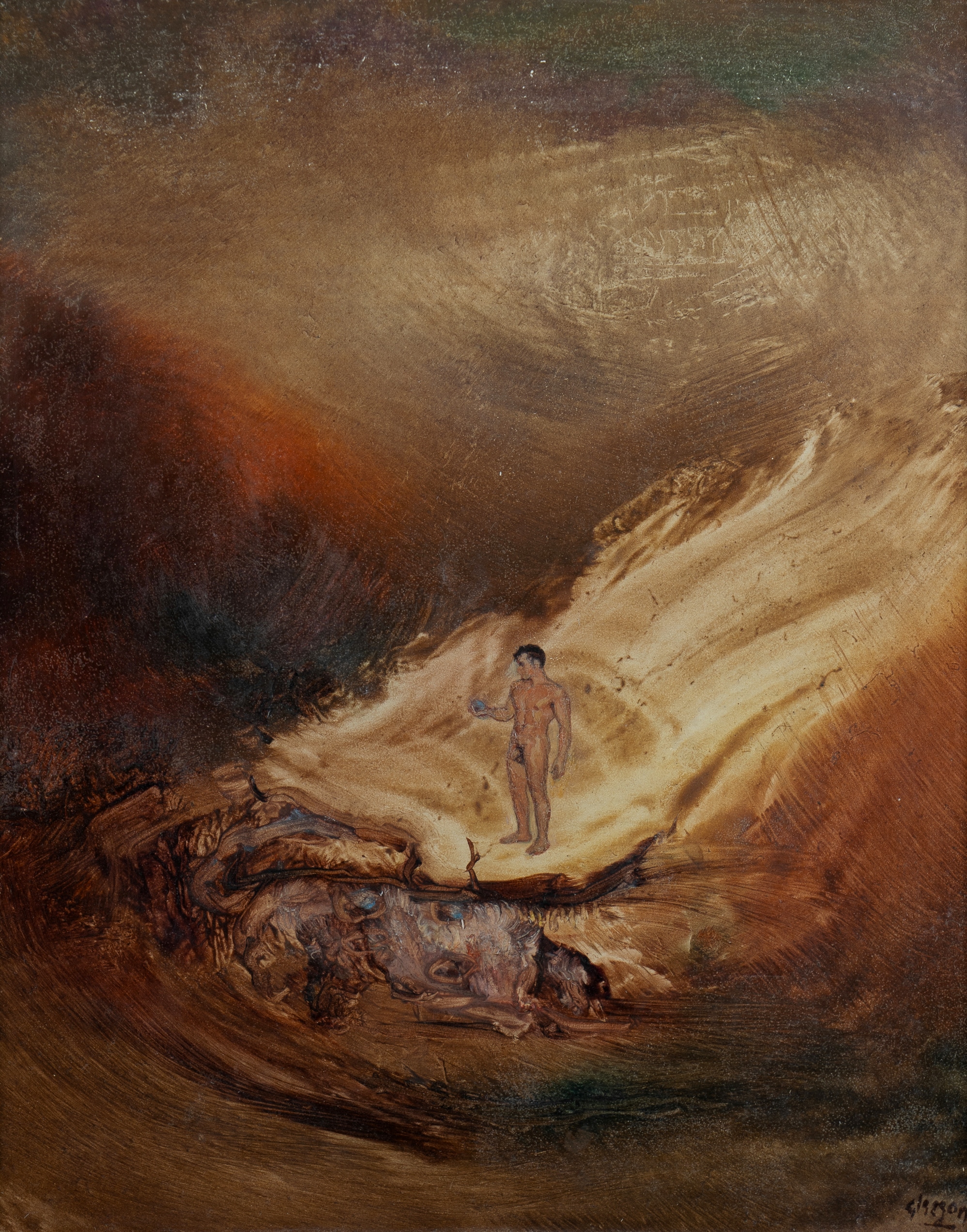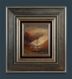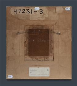 GLEESON, James Timothy (1915-2008) 'The Stone' Exhibition number 44 also inscribed verso. Oil on Board 14.5x12cm PROVENANCE: Estate late Audrey Dickenson.Estimate $1,200-1,800
