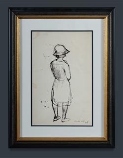 DRYSDALE, Russell (1912-1981) 'Country Child,' 1950. Initialled and titled lower right. Pen & Ink 33x21cm LITERATURE: Illus. 'Russell Drysdale,' Geoffrey Dutton, pub. Thames and Hudson London 1964, plate 62 (book included).Estimate $3,000-5,000