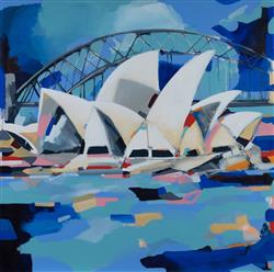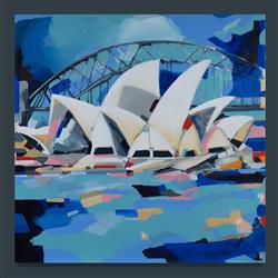 NAKAZAWA, Claire (b.1985) 'Sydney Harbour,' 2015. Acrylic on Canvas 95x95cm PROVENANCE: Seeing Sydney Harbour, Collection of Jim Haynes OAM and Robyn McMillan.Estimate $300-500