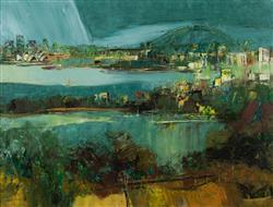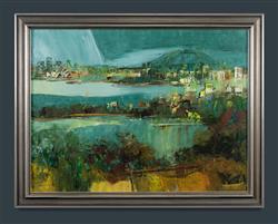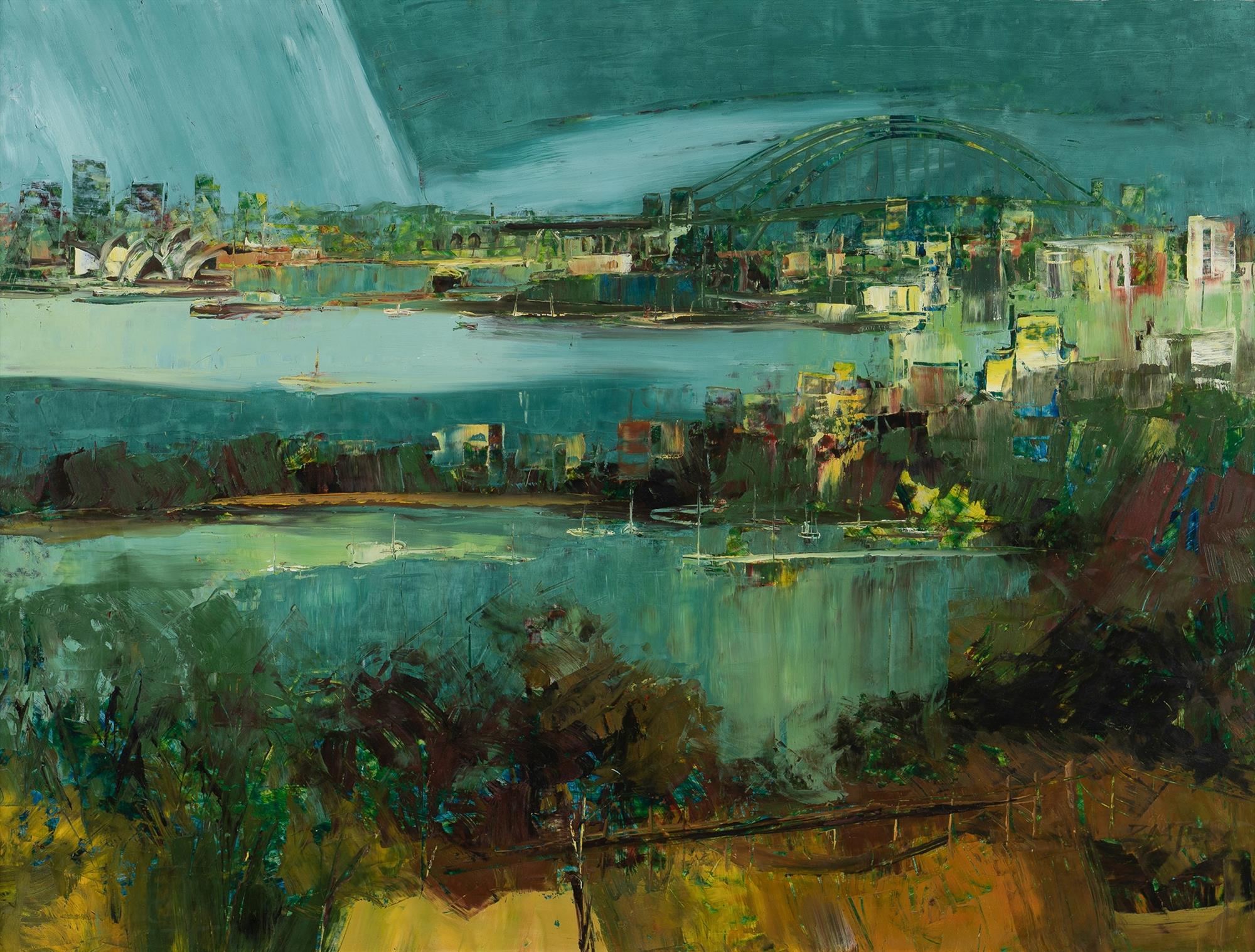 ZUSTERS, Reinis (1919-1999) 'Sydney Harbour 1 - Port Jackson' Labels verso including Holdsworth Galleries, Sydney. Oil on Board 75x100cm PROVENANCE: Seeing Sydney Harbour, Collection of Jim Haynes OAM and Robyn McMillan.Estimate $1,200-2,500