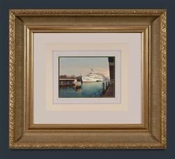 FROST, Joseph Ambrose (b.1953) 'P&O Canberra at Circular Quay' Gouache 16x22cm PROVENANCE: Seeing Sydney Harbour, Collection of Jim Haynes OAM and Robyn McMillan.Estimate $600-900