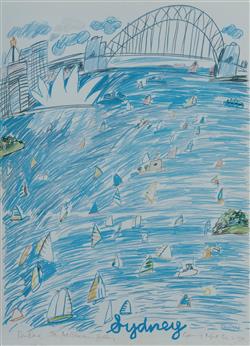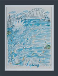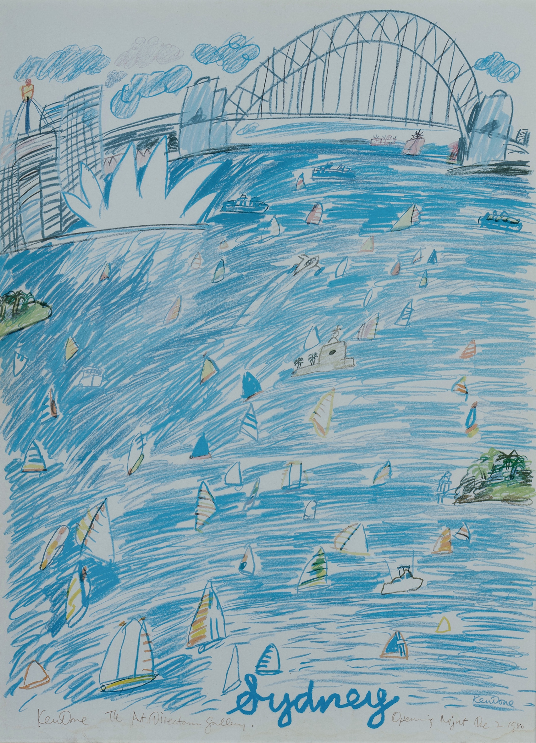 DONE, Ken (b.1940) 'The Art Directors Gallery, Opening Night, Dec 2 1980' Signed and inscribed in ink by the artist. Inaugural Print 60x44cm PROVENANCE: Seeing Sydney Harbour, Collection of Jim Haynes OAM and Robyn McMillan.Estimate $200-400