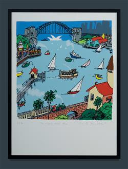 KINGSTON, Peter (1943-2022) 'The North Shore Line,' 2011. S/Print Printer's Proof 3/5 56x54cm (image) 80x60cm (sheet sight) PROVENANCE: Seeing Sydney Harbour, Collection of Jim Haynes OAM and Robyn McMillan.Estimate $500-800