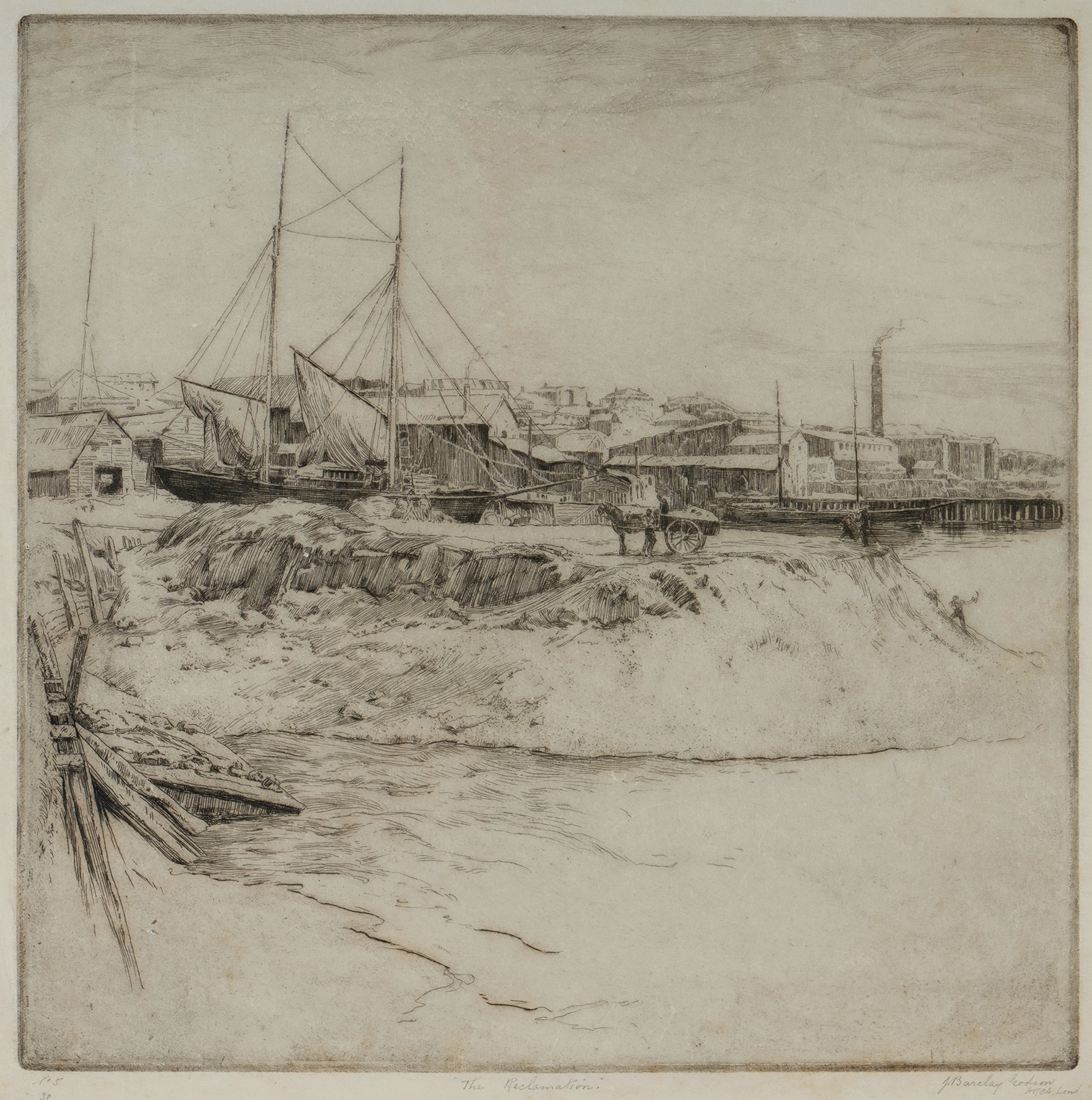 GODSON, John Barclay (1882-1957) 'The Reclamation' Etching 5/30 25x25cm PROVENANCE: Seeing Sydney Harbour, Collection of Jim Haynes OAM and Robyn McMillan.Estimate $80-150