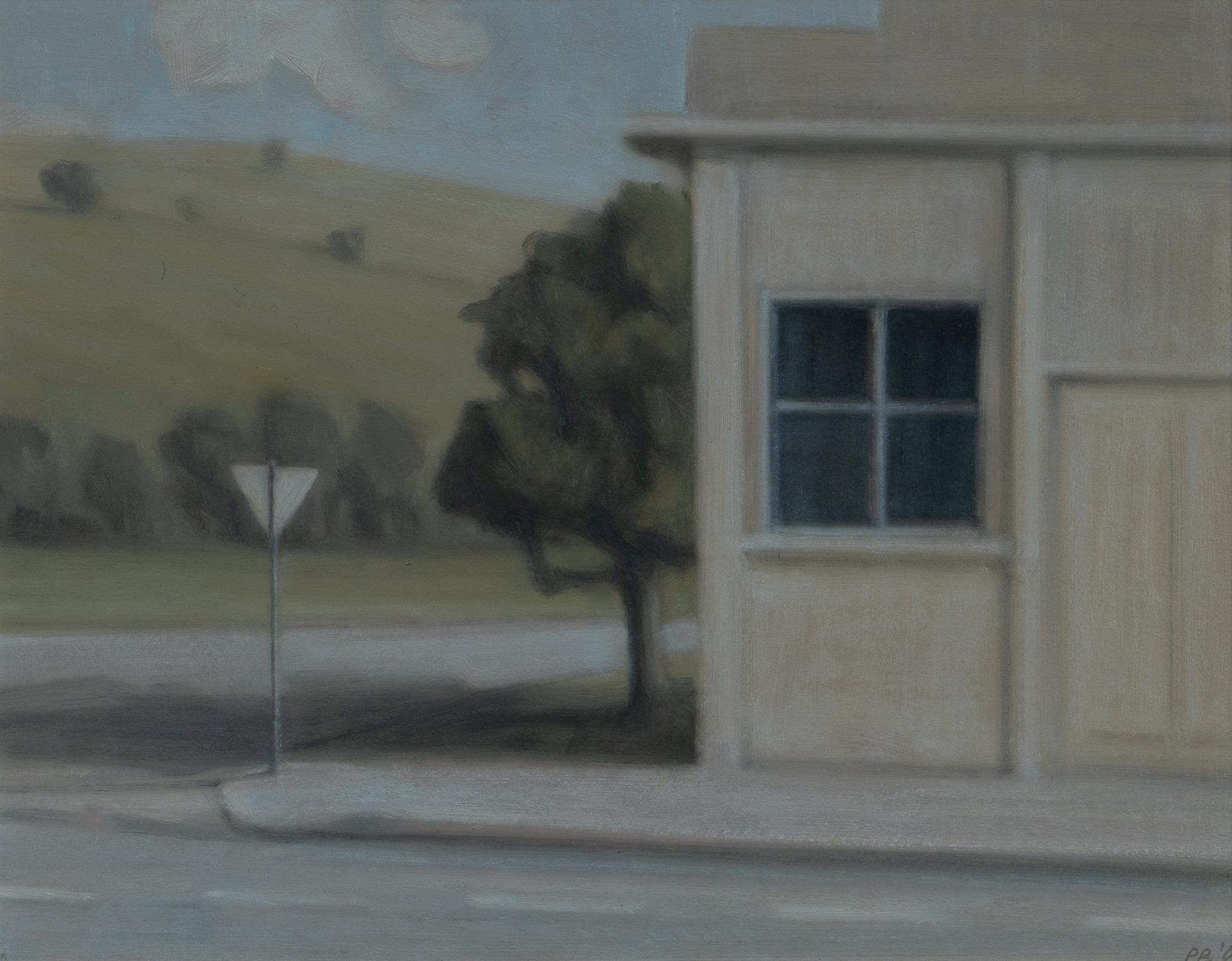 BOGGS, Peter (b.1949) 'Edge of Town,' 2007. Ex. Maunsell Wickes/Barry Stern Galleries, Sydney (original invoice included, dated 12th December 2007). Oil on Panel 23x30cm PROVENANCE: Private collection, Sydney.Estimate $1,000-2,000