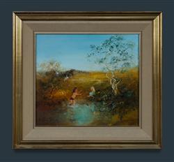 BOYD, David (1924-2011) Children at the Swimming Hole, 1970s/early 1980s. Oil on Canvas 40x45cmEstimate $8,000-12,000
