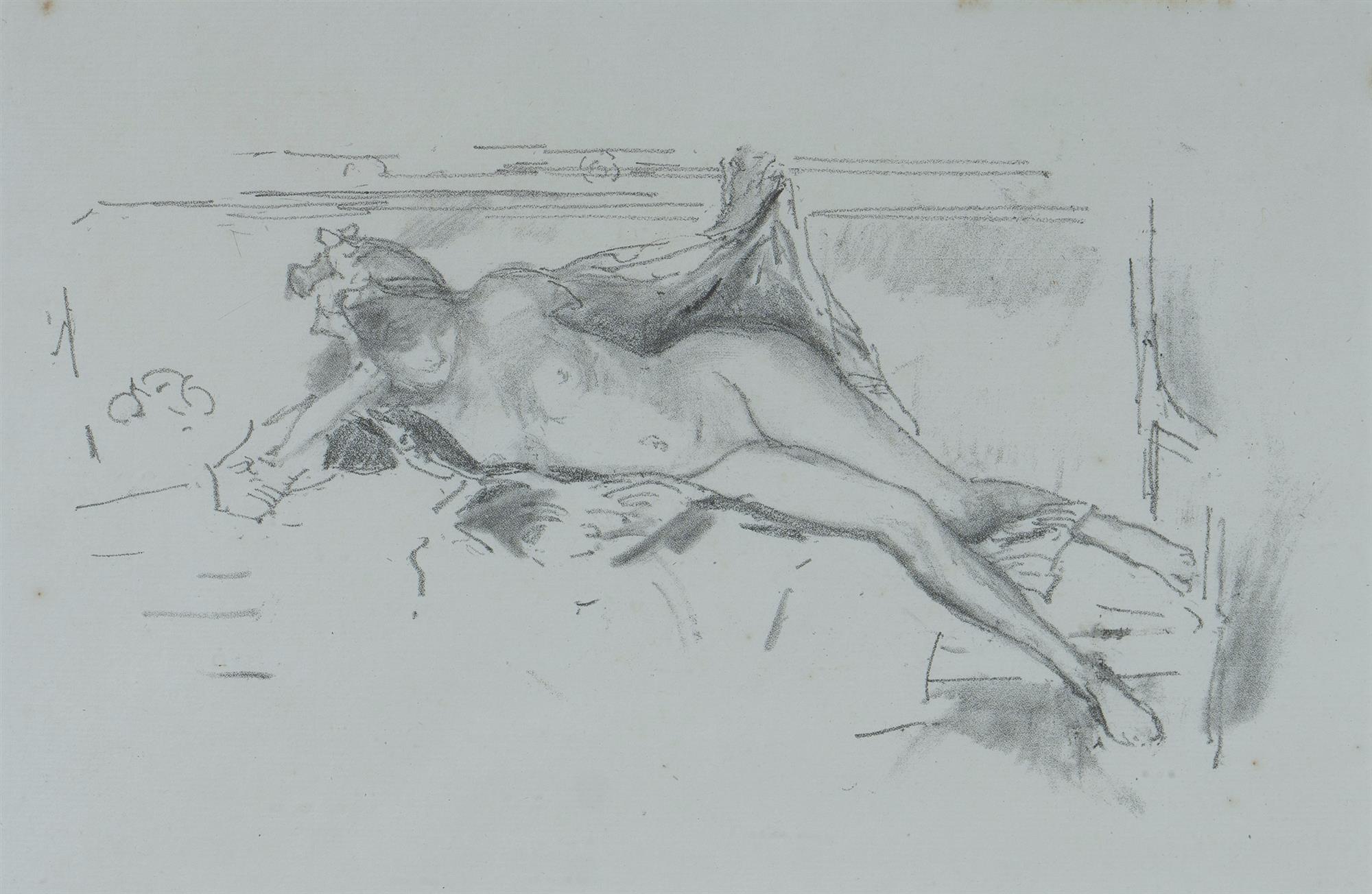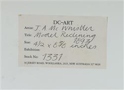 WHISTLER, James Abbott McNeill (USA 1834-1903) Nude Model Reclining (1893) Label verso for DC-ART, Woollahra NSW (stock no. 1331). Lithograph on Laid Paper 17.9x24.7cm (sheet) 15x23cm (sight)Estimate $1,000-2,000