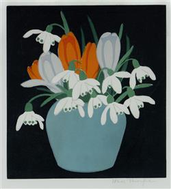 THORPE, John Hall (1874-1947) 'Crocus and Snowdrops' Signed in pencil. Colour Woodcut 16.5x15cmEstimate $700-1,200