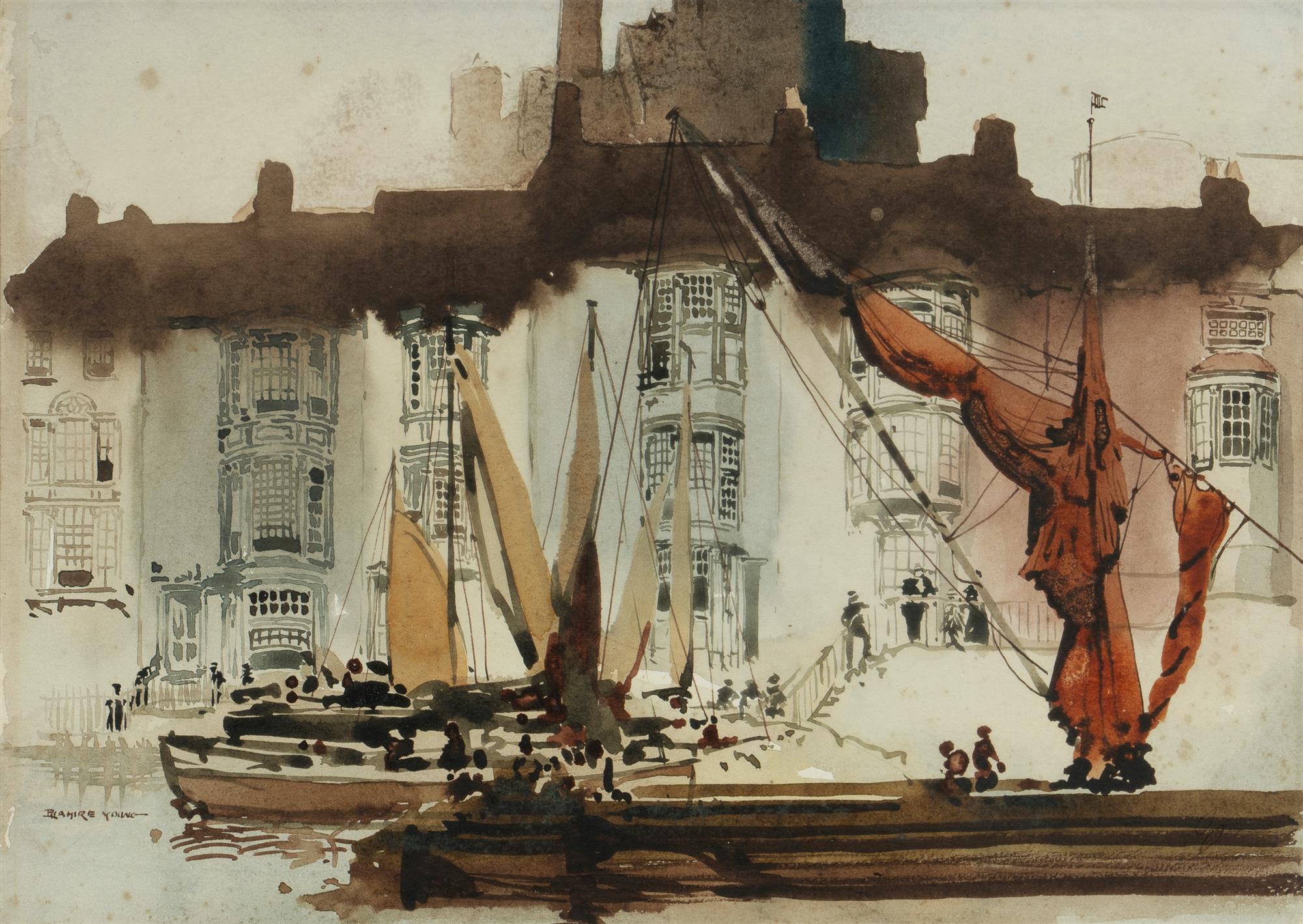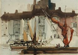 YOUNG, William Blamire (1862-1935) 'Fishing Boats, Weymouth,' 1913-21. Ex. Macquarie Galleries, Sydney (1926). Illustrated: The Watercolours of Blamire Young, Stephen Marshall, Meridian, Sydney, 2013, p.185. W/Clr 26x36cmEstimate $1,500-2,500