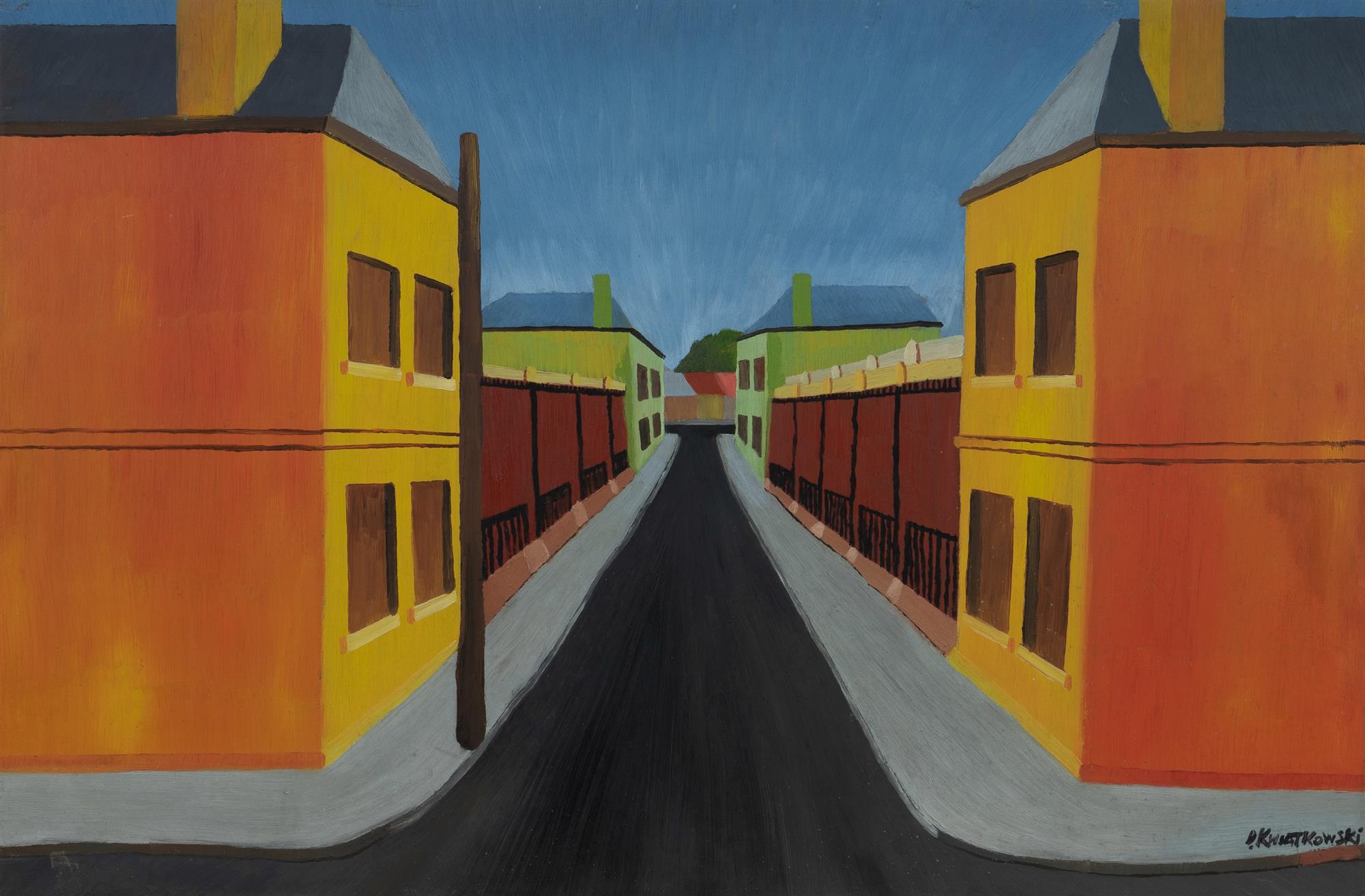 KWIATKOWSKI, D. (Working 1960s, Melbourne) Melbourne Street View Oil on Board 59.5x90cmEstimate $200-400