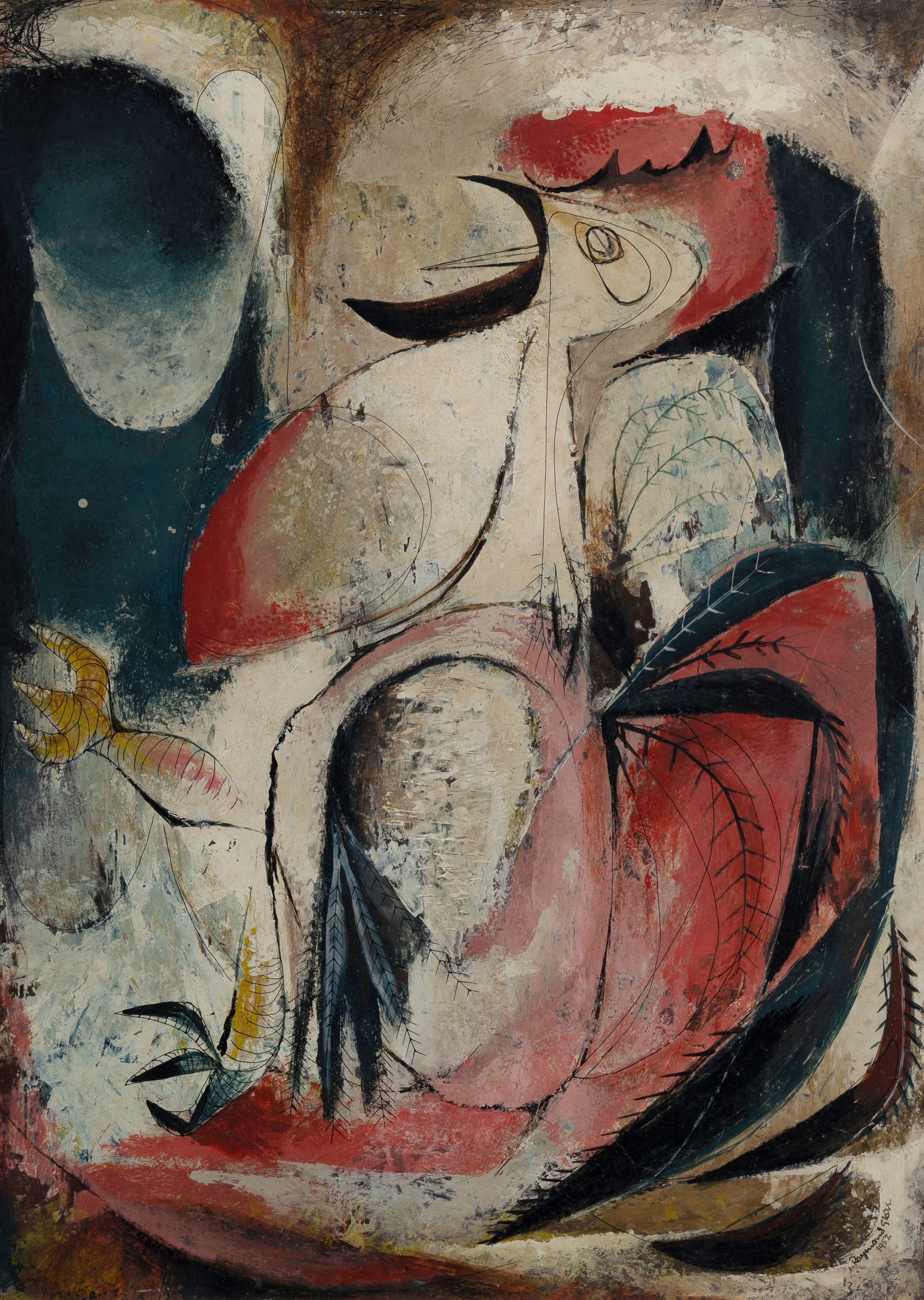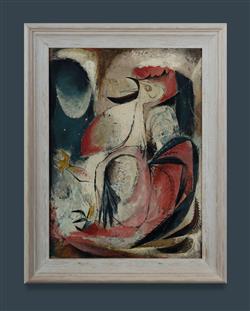 GLASS, Raymond (1921-1960) The Rooster, 1952. Oil on Board 59.5x43cm PROVENANCE: Estate late James F Staples, Sydney.Estimate $1,000-2,000