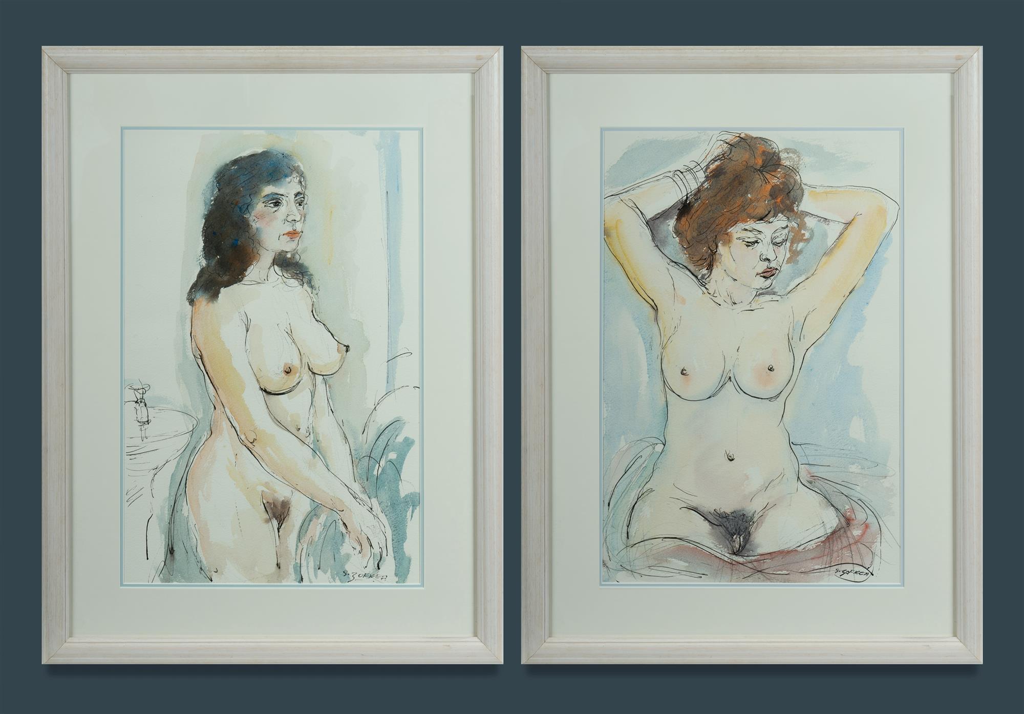 ZOFREA, Salvatore (b.1946) (2) 'By the Wash Basin'; 'Frontal Nude'. Ink & W/Clr (2) 55x36cm (each)Estimate $200-400