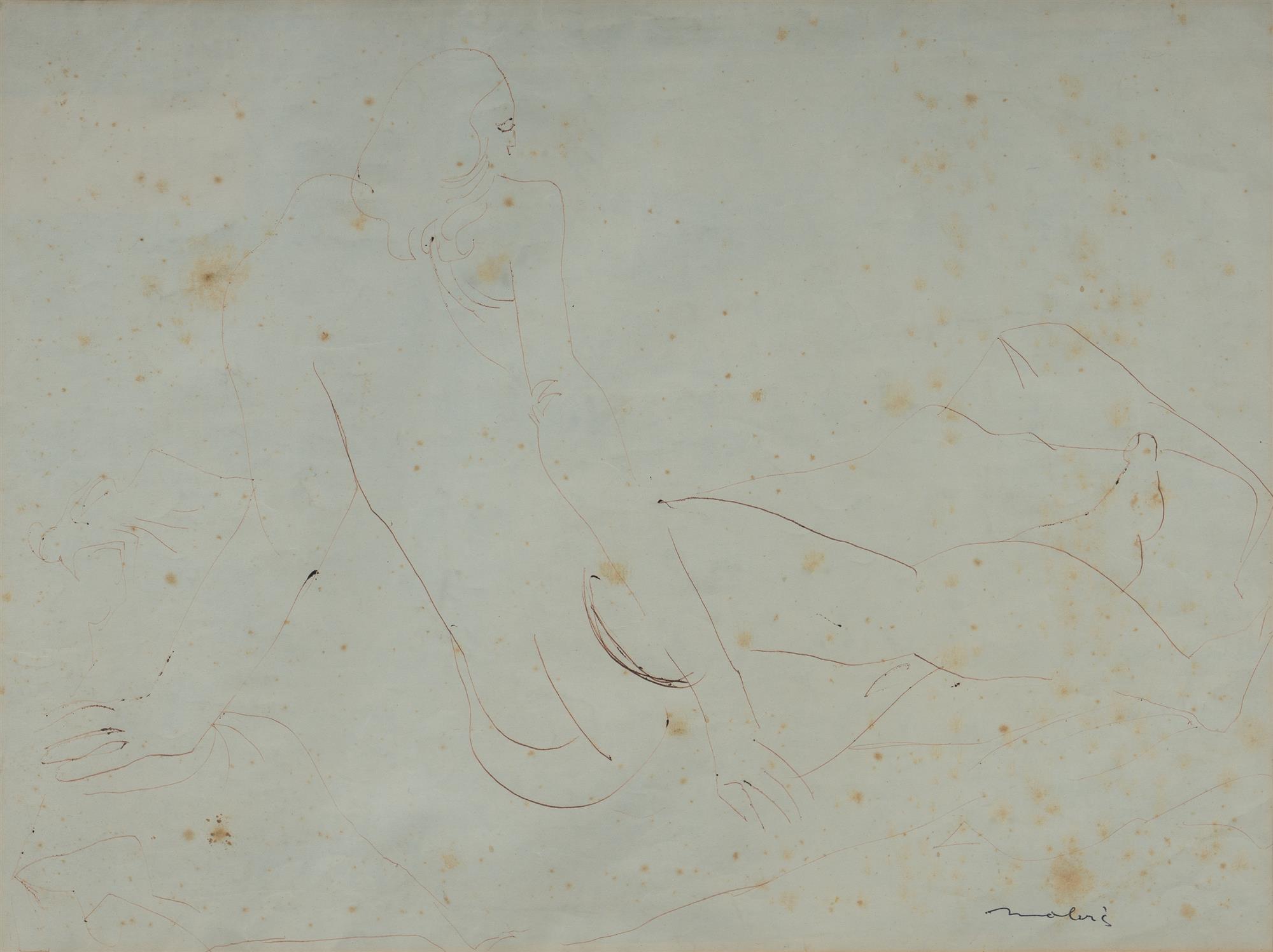 MOLVIG, Jon (1923-1970) Nude Rudy Komon Art Gallery, Sydney, label verso (stock no. 1379). Pen & Ink PROVENANCE: The Estate of Ray Hughes, Sydney.Estimate $50-100