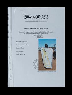 PWERLE, Molly (Aboriginal born c.1920) Untitled, 2009. Ironwood Arts cat #IW5661. Certificate of authenticity included. Acrylic on Linen 128x60cmEstimate $600-900
