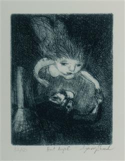 SHEAD, Garry (b.1942) 'Art Angel (Painter and Muse)' 2000. Ex Australian Galleries (label verso) Etching with Aquatint 32/50 15x11cm (image)Estimate $200-300