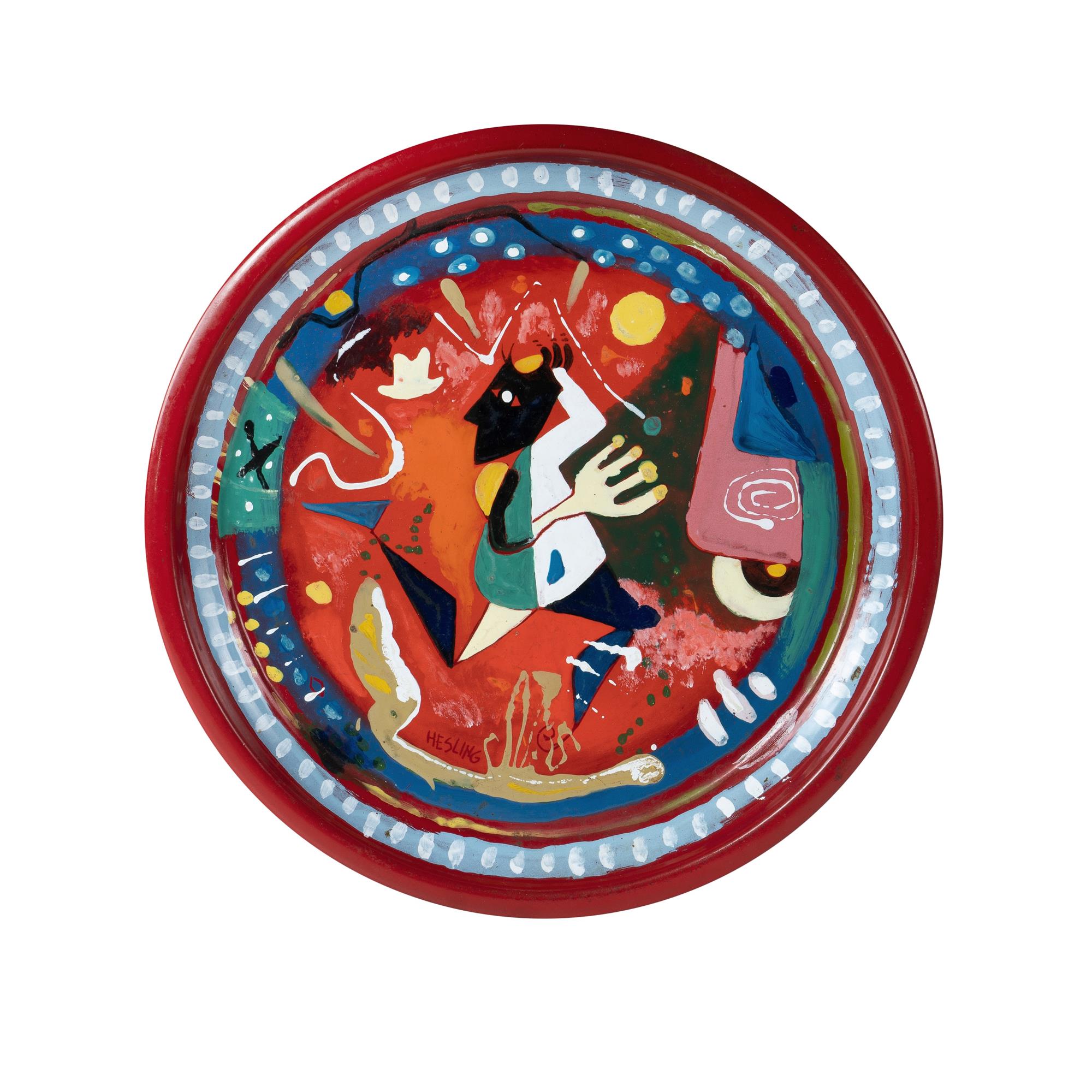 HESLING, Bernard (1905-1987) Circus Performer Signed lower centre. Vitreous Enamel Plaque Dia.30cmEstimate $600-900