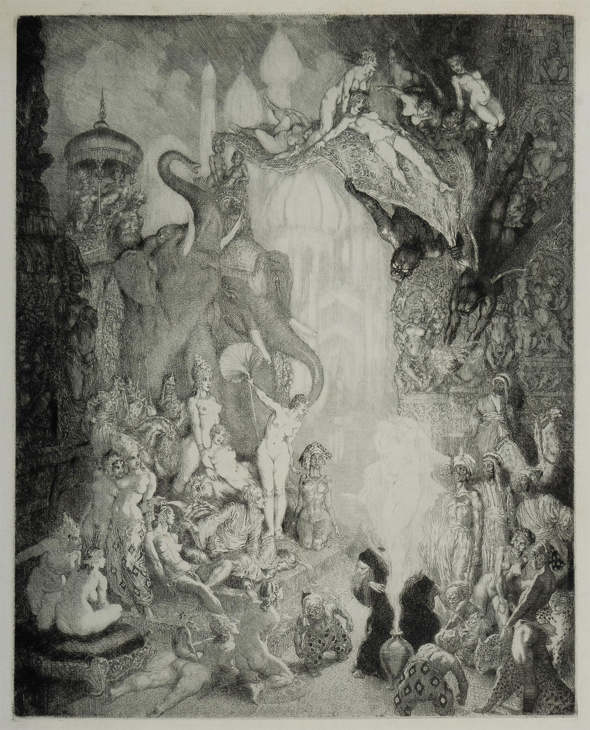 LINDSAY, Norman (1879-1969) 'Arabiana,' 1937. Unsigned proof. Etching & Engraving (Proof) 29.1x23.2cm PROVENANCE: The artist; Margaret Coen (fellow artist & model for the above); thence by descent - collection of Meg Stewart.Estimate $400-700