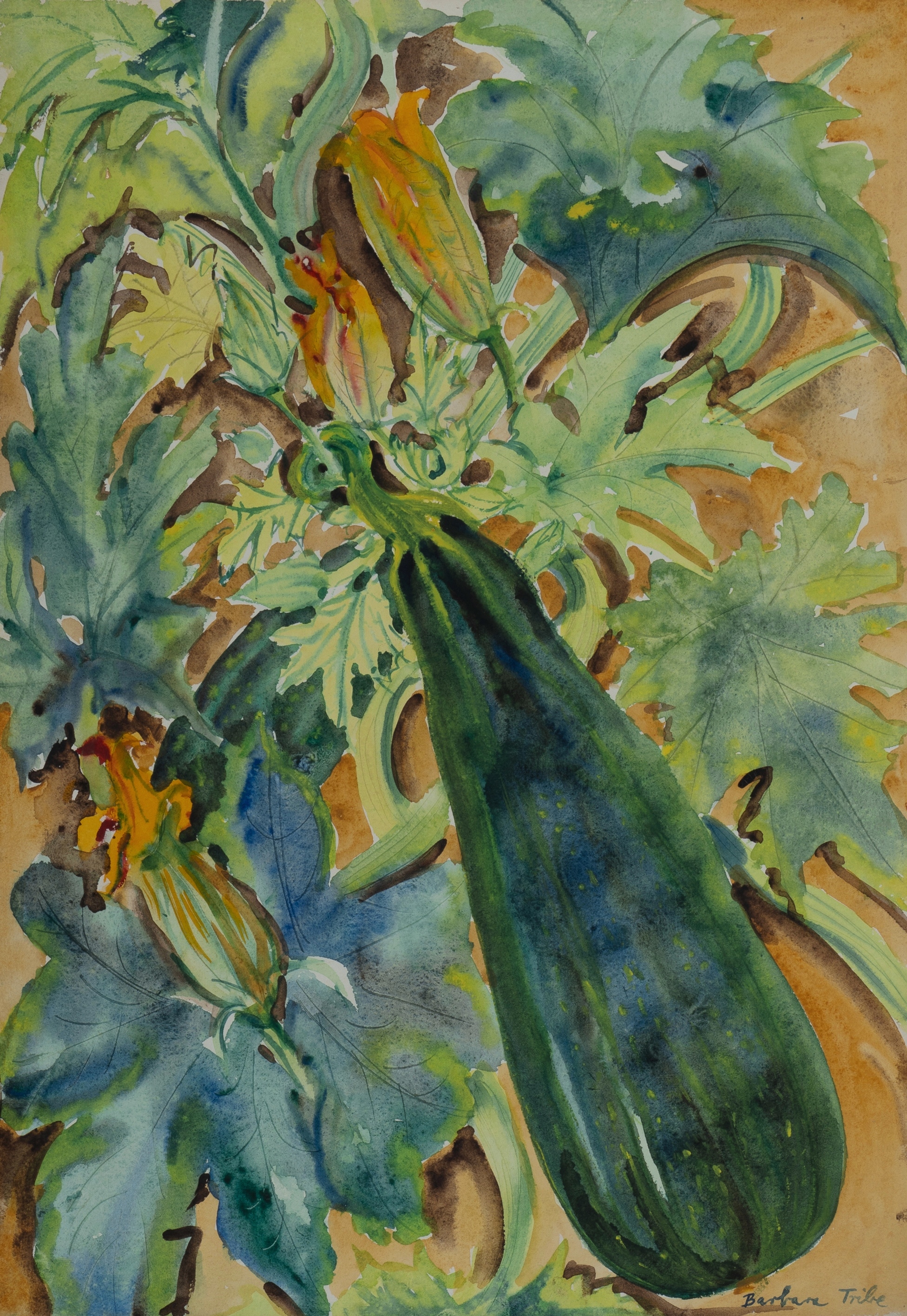 TRIBE, Barbara (1913-2000) 'Vegetable Marrow, Vancouver B.C.' 1978. Signed lower right; inscribed with title verso. W/Clr 58.5x40cmEstimate $300-500