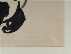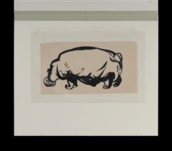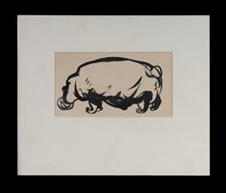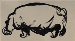 LYMBURNER, Francis (1916-1972) Hippopotamus, c.1950. Unsigned, but with estate blind stamp lower right; and certified verso by Julian Lymburner. Ink Brush Drawing 13x24cm (sheet) PROVENANCE: Deceased Estate, QLD.Estimate $200-400