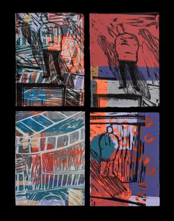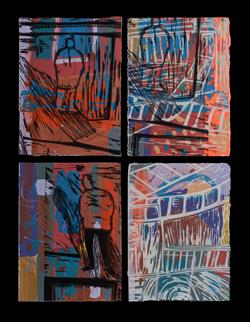 Artist Unknown, (8) Standing Figure in City Settings Unsigned Acrylic on Paper (8) 19x14cm approx. each PROVENANCE: Deceased Estate, QLD.Estimate $80-150
