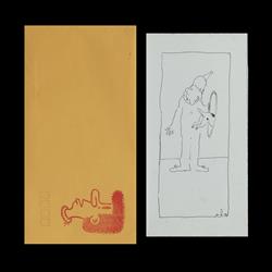 KINGSTON, Peter (1943-2022) Boofhead Initialled 'P.K.' and pencil inscription to base 'No 1 for Sal & Dior'. Together with a Peter Kingston designed card for Martin Sharp's memorial, 2013 Painted Plaster (H33cm)Estimate $800-1,200