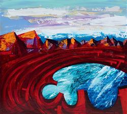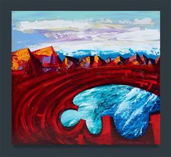 POPOV, Constantine (Swiss/Australian b.1962) 'Emerald Lagoon,' 2022. Acrylic on Board 45x80cmEstimate $300-500