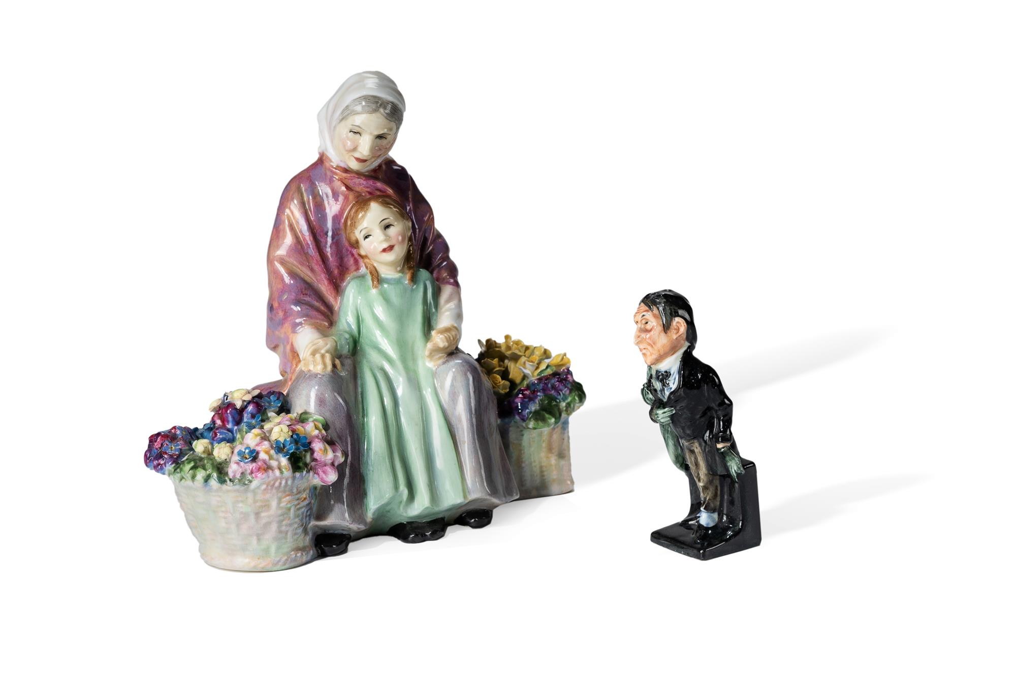 Royal Doulton Figurines. Includes 'Granny's Heritage' HN 1873, and Dickens figure 'Stiggins'. (H18cm & 10cm)Estimate $60-100