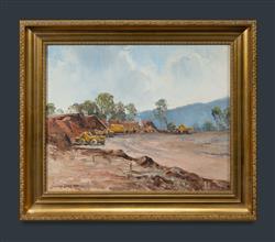 LONG, Leonard (1911-2013) Mining Scene, East Coast Malaya,' 1963. Oil on Canvas 39.5x50cmEstimate $500-800
