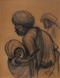 DURACK, Elizabeth (1915-2000) (2) 'Kabah the Grandmother,' signed lower right, (57x44cm); and 'Morning,' unsigned, (45x59.5cm). Mixed Media on Paper on Board (2)Estimate $300-500