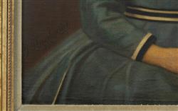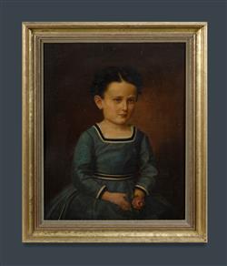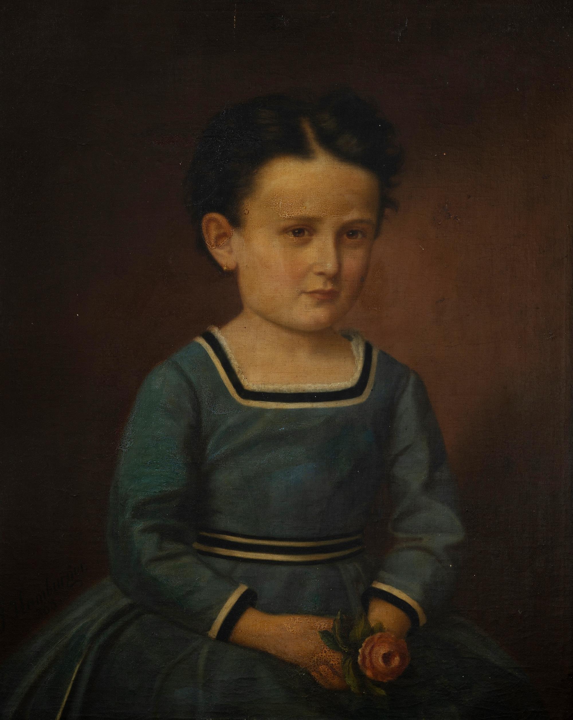 HAMBURGER, Julius (Slovakia 1830-1909) Portrait of Young Girl in Blue Dress, Holding Flower, 1868. Oil on Canvas on Board 63x50cmEstimate $300-600